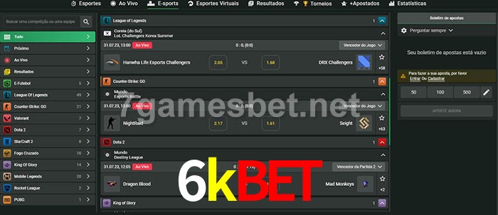 O 6kbet oferece uma grande seleção de opções de apostas em e-sports com probabilidades competitivas